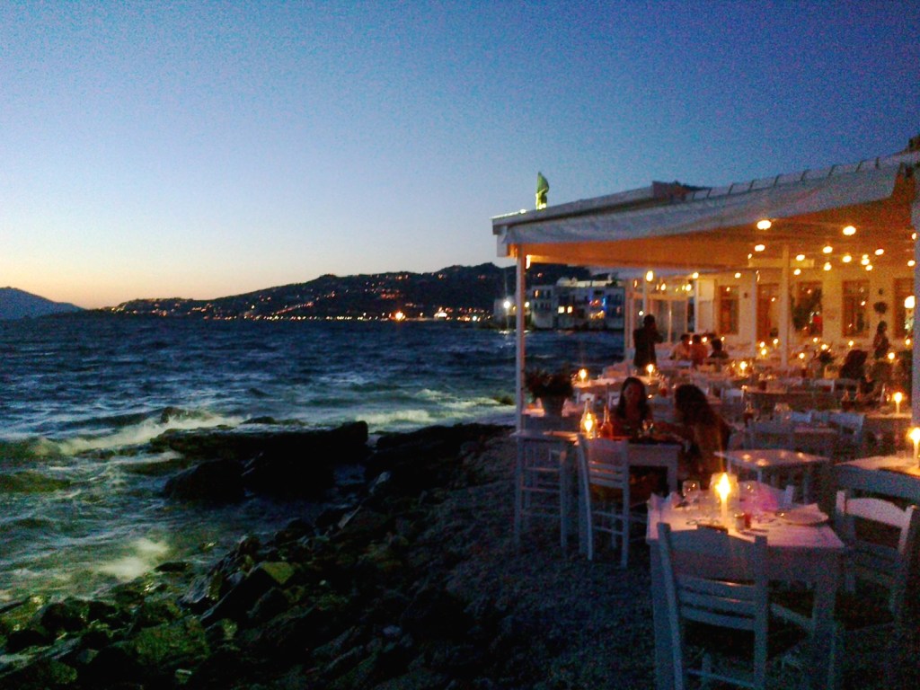 The restaurant is uniquely positioned in a cave with blue waters lapping the rock face below your feet. Try the Mykonian salad which is a traditional delight and don’t miss the lobster pasta.